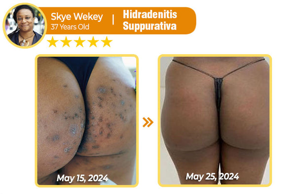 “Dealing with Hidradenitis suppurativa has been such a painful experience, especially with those red, swollen lumps that make sitting so uncomfortable. I tried everything—meds, oils, sprays—but nothing really worked. I was ready to settle for managing it long-term until I found this cream. It eased the pain fast, and after just three days, the swelling went down a lot. The dark patches have lightened up, and my skin feels so much smoother, not thickened anymore. Now, it’s almost completely cleared up, and I feel so much relief!” –