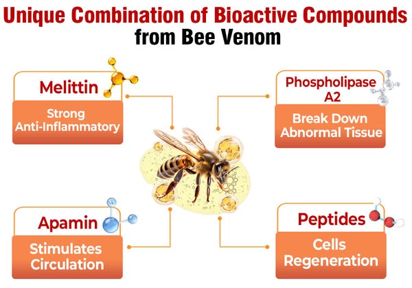 Melittin can reduce the swelling, redness, and pain associated with the inflamed skin or lumps.